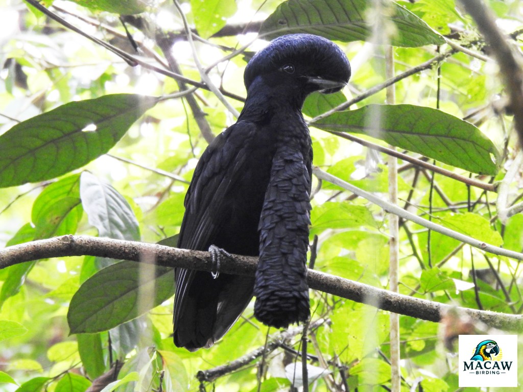 One of the most remarkable features of the male Long-wattled Umbrellabird is its striking long wattle, which dangles from its throat like an elaborate black umbrella, but their ability to fly between tall canopy trees with agility and grace is equally impressive.
