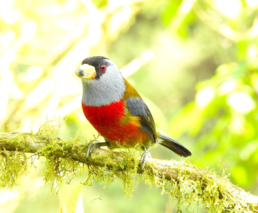 - Target birds: Plate-billed Mountain Toucan, Toucan Barbet, Tanager Finch, Ocellated Tapaculo, White-faced Nunbird, Gorgeted Sunangel, Violet-tailed Sylph, Powerful Woodpecker, Golden headed and Crested Quetzal, and more.